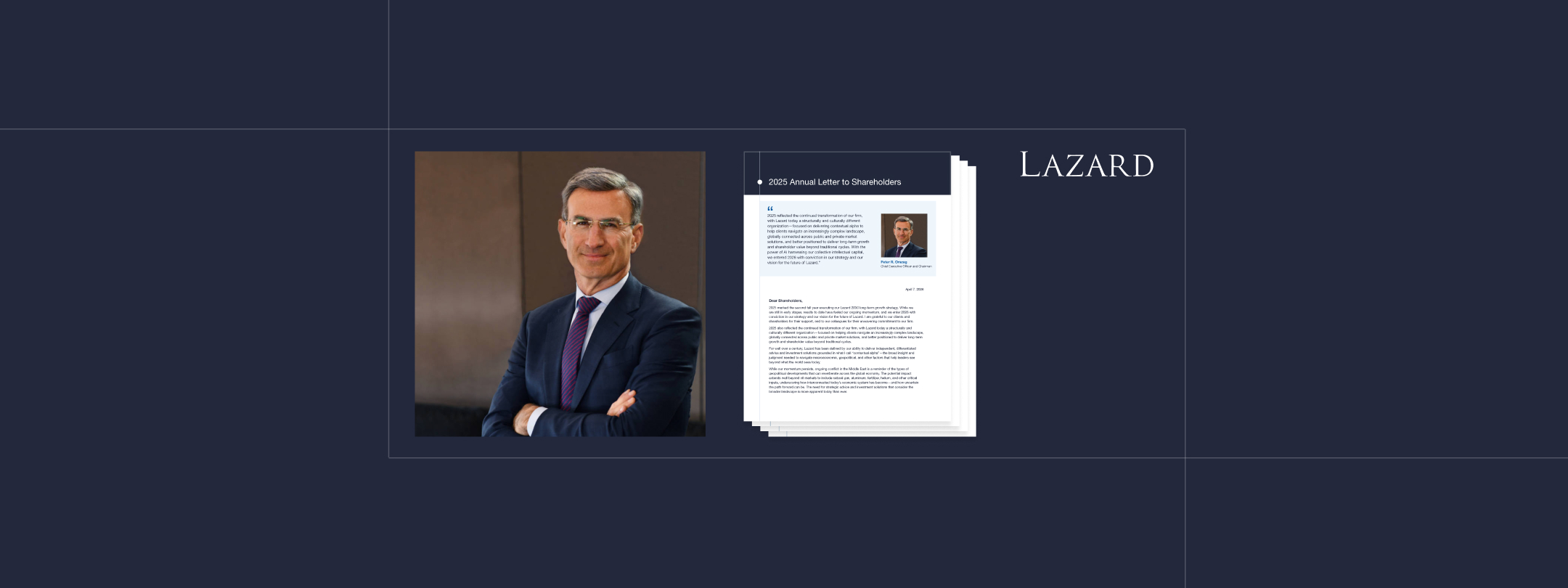 Our progress in 2025 and over the past two years since launching our Lazard 2030 long-term growth strategy demonstrates our ongoing focus on execution and reflects the expertise and dedication of our colleagues around the world. While we recognize that significant work remains, we enter 2026 with momentum and conviction. We are proud of what we have accomplished, and we are even more ambitious about what lies ahead.