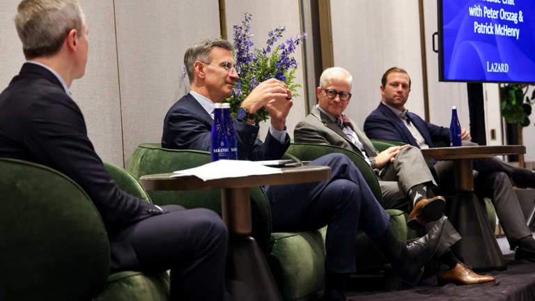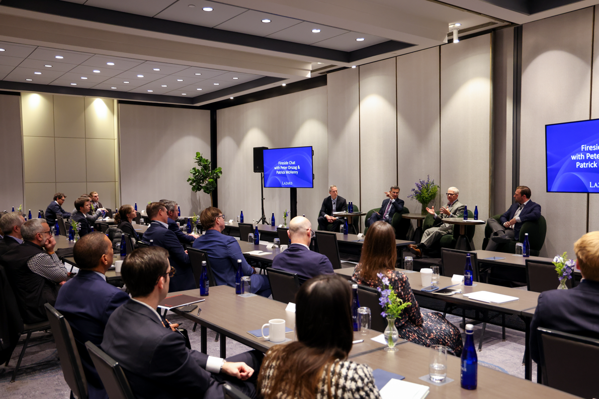 The agenda culminated in a fireside chat with Lazard CEO and Chairman, Peter Orszag, and Patrick McHenry, Lazard Senior Advisor and former Chair of the U.S. House Financial Services Committee. Their discussion explored critical themes shaping the sector, including regulatory frameworks for cryptocurrency and stablecoins, the impact of AI on the financial services industry, M&A trends in the current antitrust environment, and key business operational considerations in the current administration.
